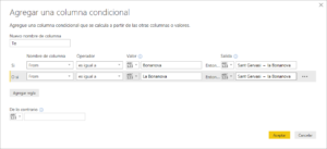 Le añadiremos otra columna de nombre To, donde escribiremos los valores que aparecen en la consulta Location. Para ello podemos usar la opción reemplazar valores o crear una columna condicional que es el que hemos usado en este caso: